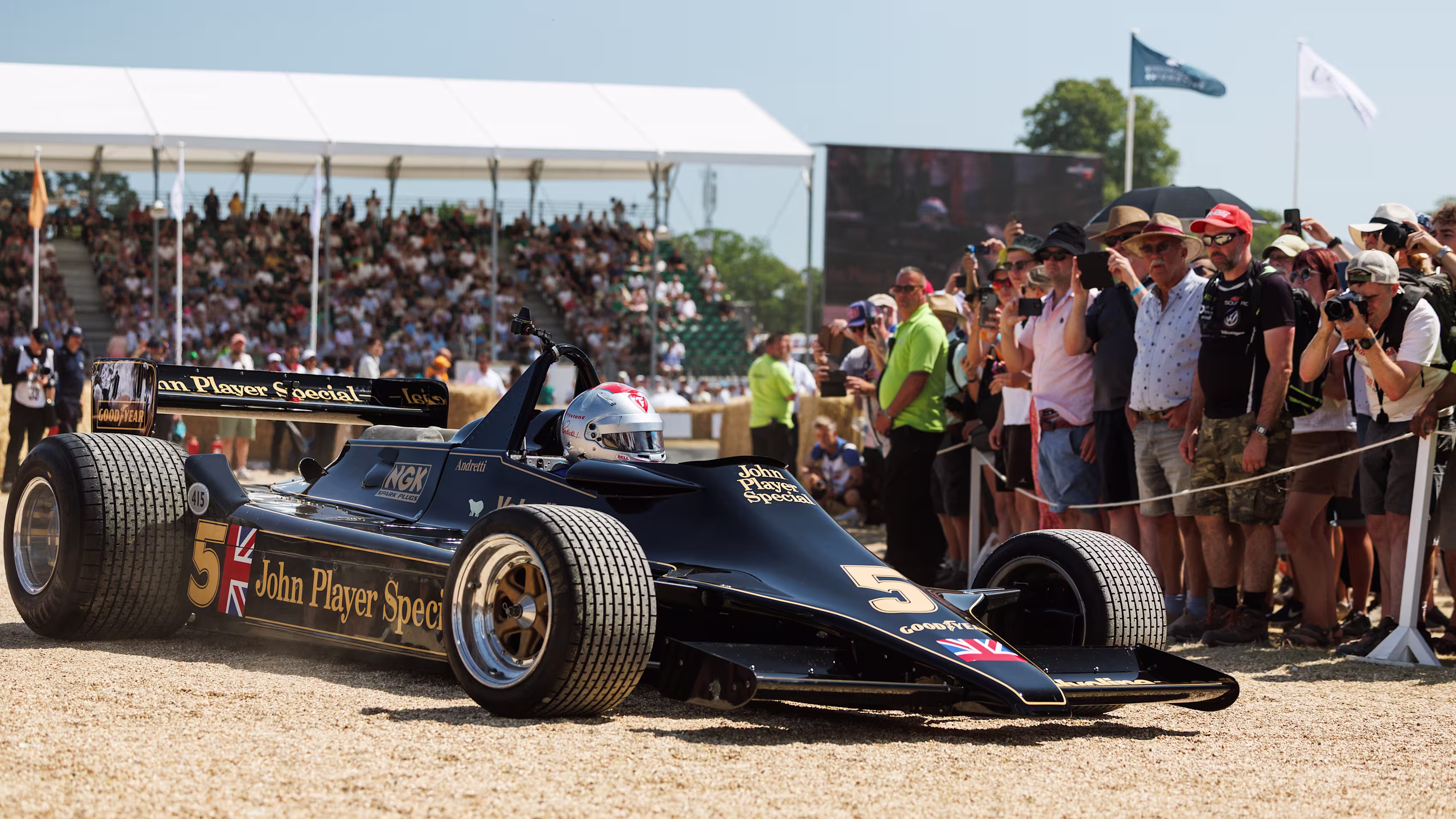 Otros momentos destacados del festival de este año incluyeron al propietario de Haas, Gene Haas, conduciendo uno de sus propios autos de Fórmula 1 , mientras que el socio técnico gerente de Aston Martin, Adrian Newey, condujo un Ferrari 312/69 además de su propio Lotus 49.